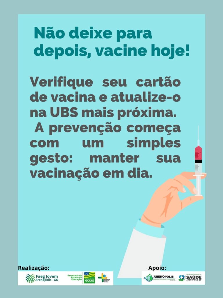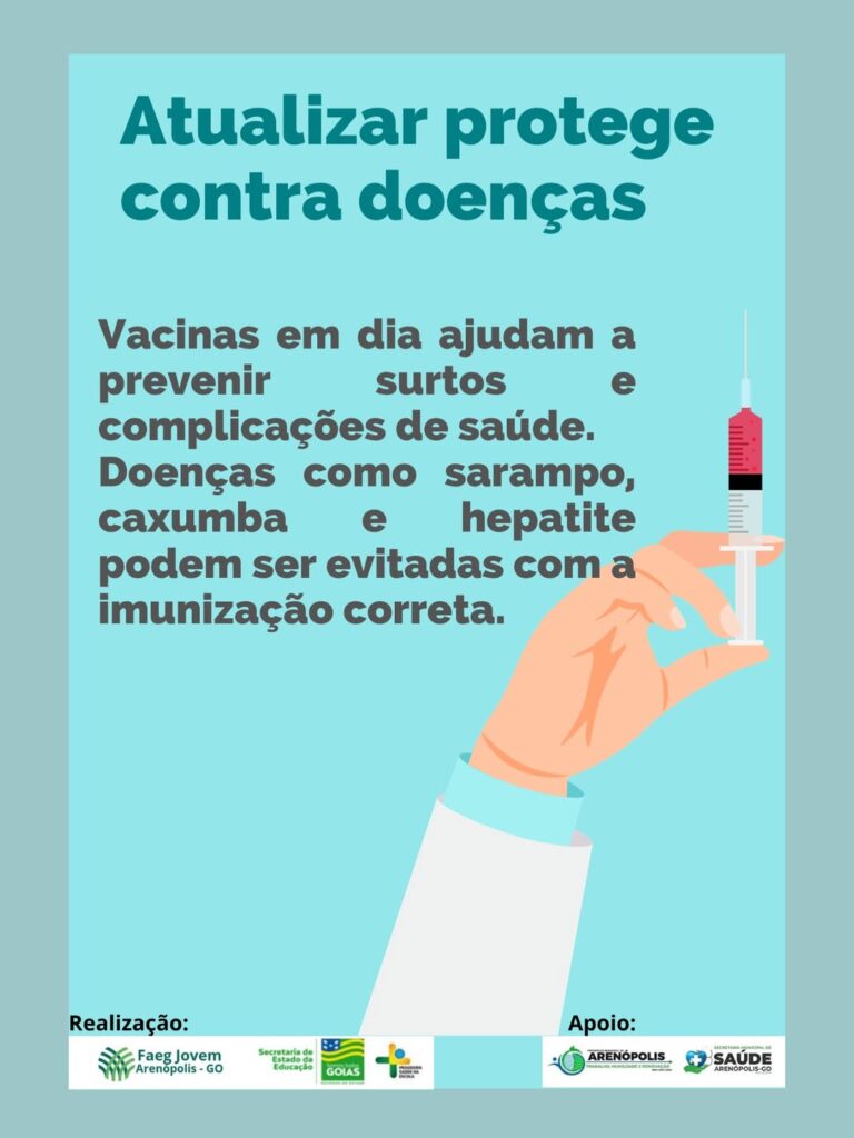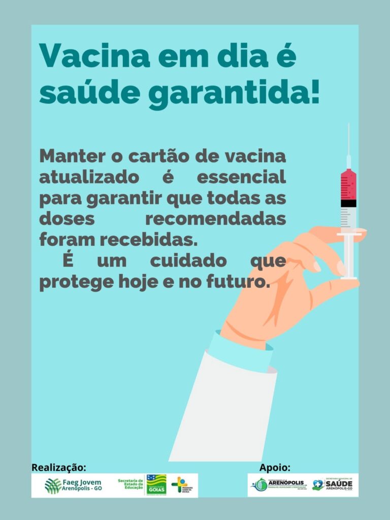 A Unidade Básica de Saúde de Arenópolis, em parceria com o Faeg Jovem de Arenópolis, está realizando uma campanha especial de atualização dos cartões de vacina em todas as escolas do município.